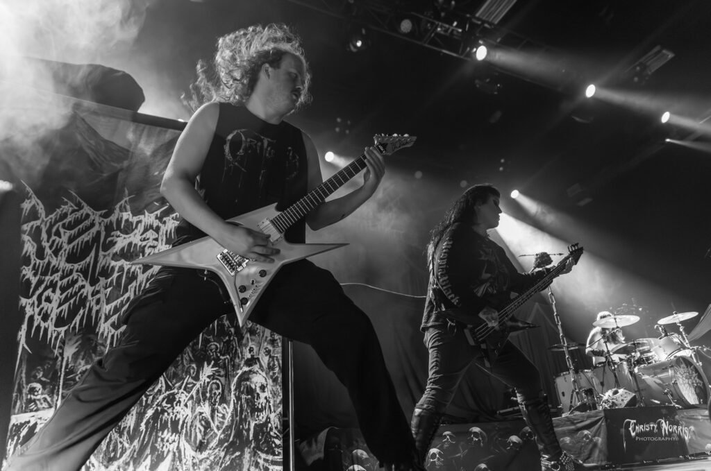 Frozen Soul delivered a crushing, no-frills assault that felt like being buried alive in a blizzard of riffs and raw aggression. From the moment they hit the stage, their signature old-school Texas death metal sound locked in—downtuned guitars grinding like glaciers, thunderous drums, and cavernous vocals that echoed through the venue with chilling intensity. The crowd fed off every punishing breakdown, turning the pit into a swirling storm of energy, while the band’s tight, relentless performance proved they’re more than just hype—they’re the real deal. No gimmicks, no wasted motion—just pure, bone-freezing brutality that left everyone in the room both exhausted and wanting more.