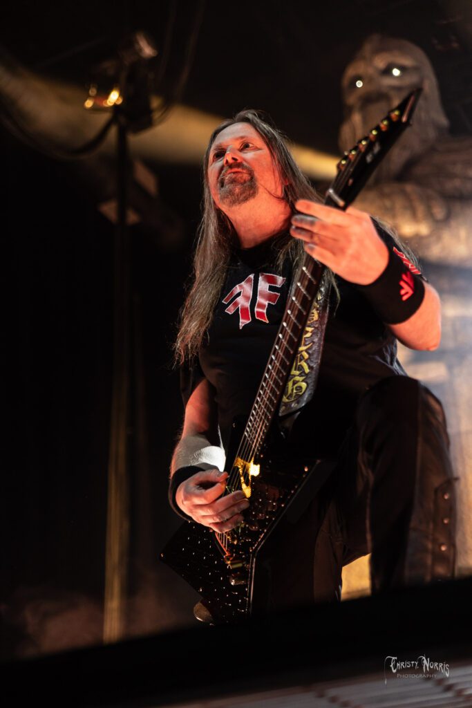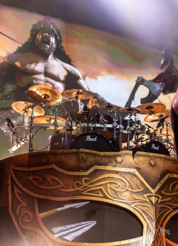 Amon Amarth followed with a commanding performance that leaned heavily into their signature Viking aesthetic. From the first crushing riffs to the final triumphant chants, their set felt like a battle cry brought to life. The band’s connection with the crowd was undeniable—fans roared lyrics back at the stage and fully embraced the theatrical elements that have made Amon Amarth a live powerhouse. Their ability to balance melodic hooks with relentless aggression kept the energy surging, transforming the venue into a sea of raised fists and synchronized movement.