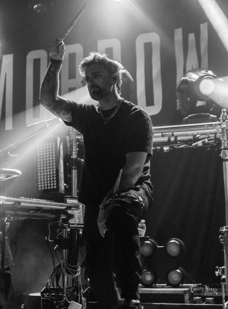The final band for the night was Sheffield, England’s While She Sleeps. While She Sleeps stormed the stage, delivering a thunderous set of UK-made metalcore that instantly ignited the crowd. Fresh off the energy left behind by Bury Tomorrow, the fans showed no signs of slowing down—bouncing, screaming, and surging forward as frontman Lawrence “Loz” Taylor commanded the chaos.