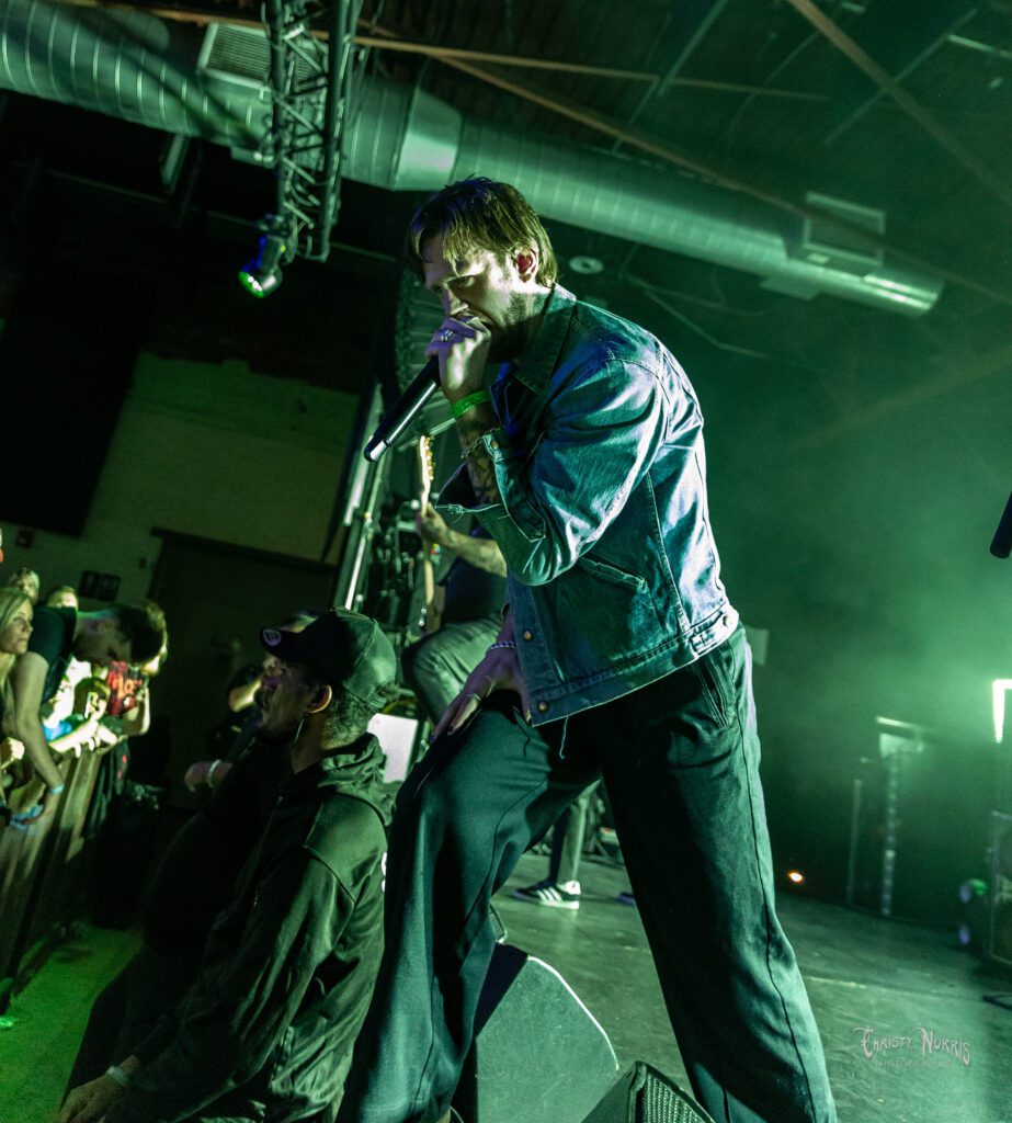 The night started off with the Des Moines, IA band Vended. Vended is comprised of vocalist – Griffin Taylor, drummer – Simon Crahan, bassist – Jeremiah Pugh, lead guitarist – Cole Espeland, and rhythm guitarist – Connor Grodzicki. From the moment Vended stormed the stage, it was clear this wasn’t going to be a passive show. Barely one song in and the frontman barked, “I wanna see a pit on the second song!” — and the crowd obeyed like it was gospel. A girl tied her hair back in a quick ponytail, eyes wild with anticipation, and dove straight into the chaos.