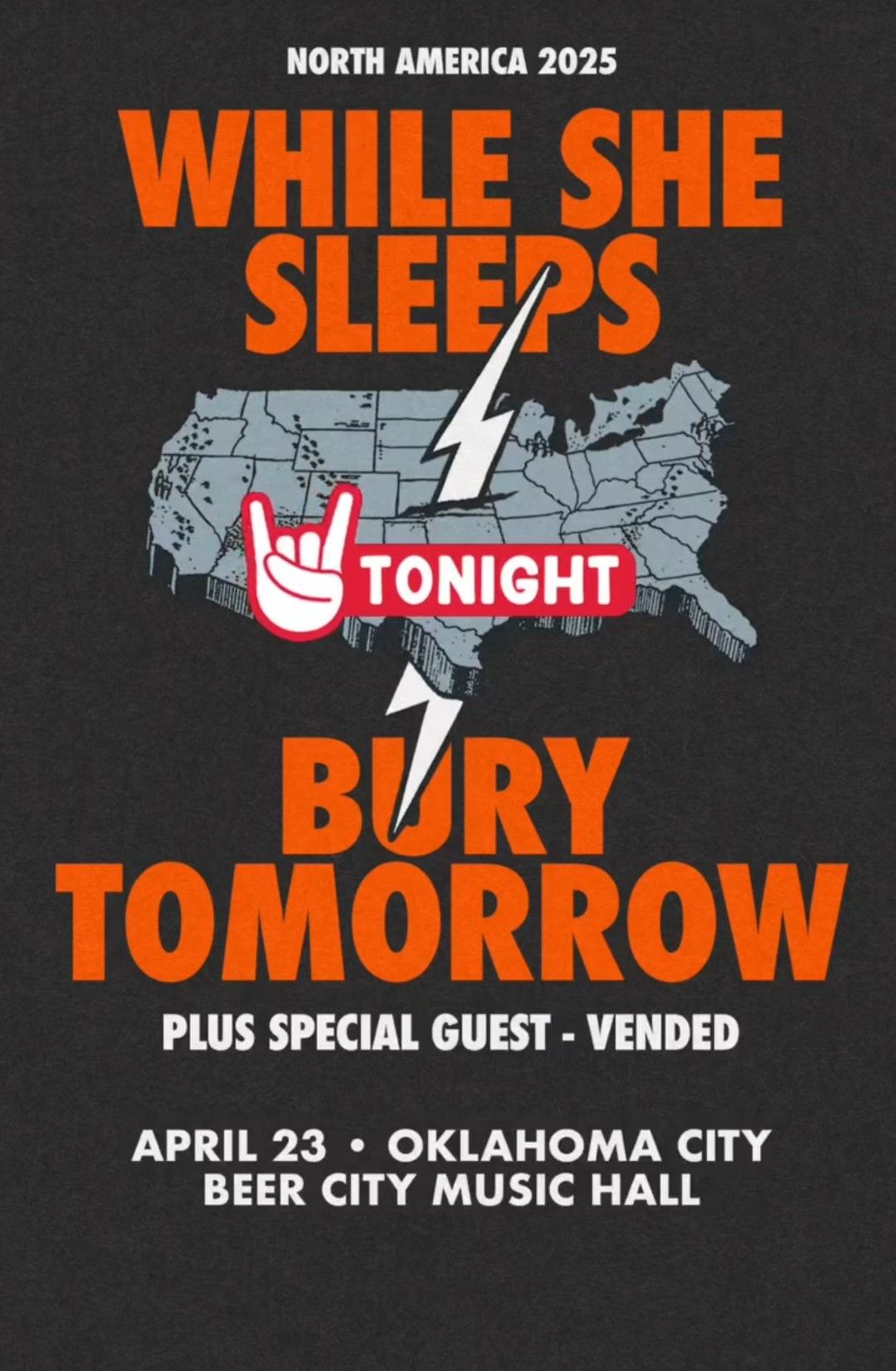 While She Sleeps and Bury Tomorrow brought their 2025 North American Tour to Beer City Music Hall in Oklahoma City. They had special guests Vended along with them. The bands played to a packed house.